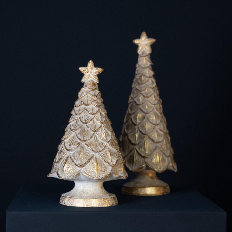 In diesem Jahr präsentiert WERNER VOß Ihnen stimmungsvolle Accessoires in verschiedenen Ausführungen. Vor allem bei Kerzenlicht erstrahlen die goldenen Tannenbäume in vollem Glanz und lassen Ihren Raum in magischem Licht erscheinen. Dieser dekorative Tannenbaum ist Teil der diesjährigen Weihnachtsdekoration von WERNER VOß. Der Tannenbaum steht sicher auf einem Fuß und beeindruckt mit seinem Stern an der Spitze. Ein toller Blickfang zum Fest.