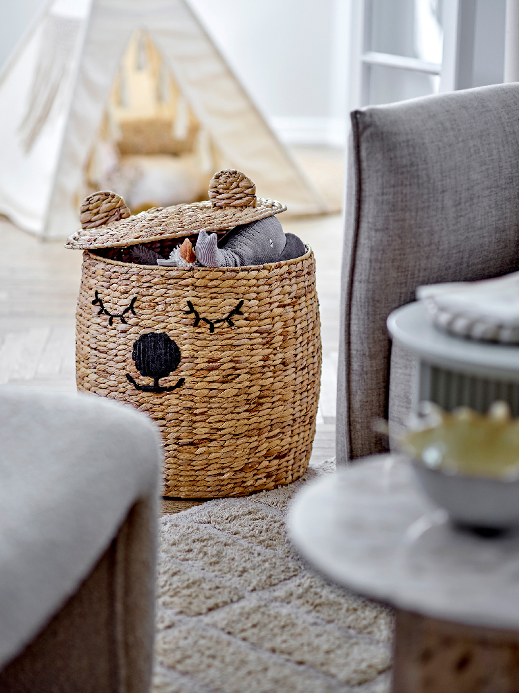 Der charmante Korb DOLMA gefertigt aus Wasserhyazinthe, misst stolze hohe 50 cm und besticht durch liebevolle Details: kleine verspielte Ohren zieren den Deckel, und ein gut gelauntes Gesicht auf der Vorderseite verleiht ihm eine besonders freundliche Ausstrahlung. Er ist der Inbegriff einer geschmackvollen nordischen Wohneinrichtung, die ein Lächeln hervorruft. Ideal, um Ihre Aufbewahrung mit Stil und Charme zu versehen.