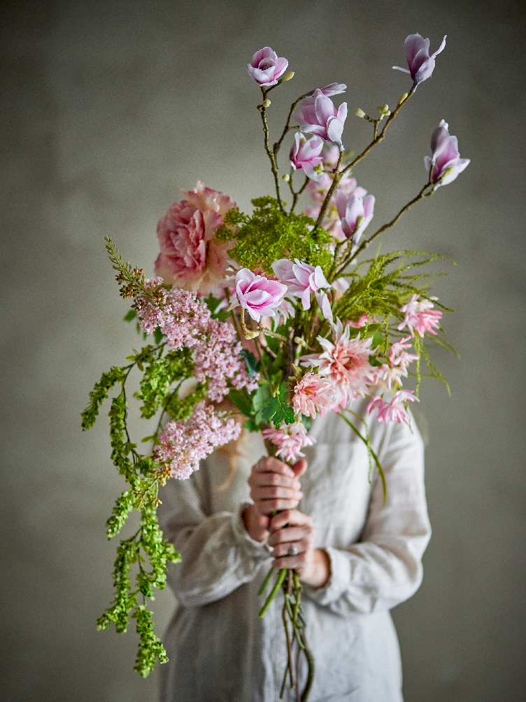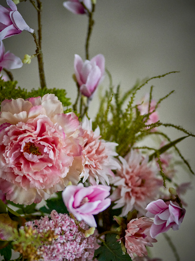 Dieser kunstvoll gestaltete Kunstblumenstrauß BREEZE vereint zarte Magnolienblüten mit üppigen Pfingstrosen und feinem Grün zu einer harmonischen, stilvollen Komposition. Die sanften Rosé- und Cremetöne verleihen dem Arrangement eine edle Leichtigkeit und eine zeitlose, romantische Ausstrahlung.