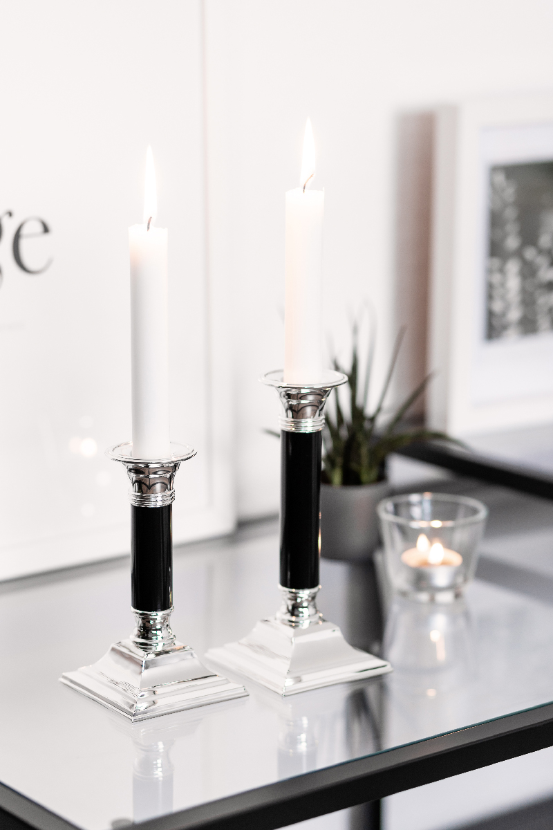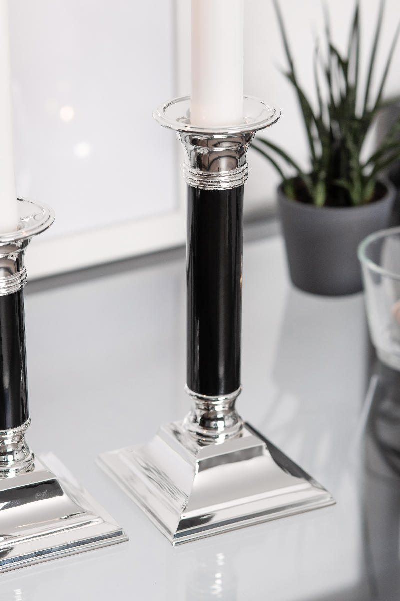 Klassische Formen - edle Materialien - hochwertige Verarbeitung. Der Kerzenleuchter LINCOLN von EDZARD vermittelt Stil, Gediegenheit und absolute Qualität für die edle Tafel und ein gehobenes Ambiente. Der quadratische Fuß in hochglanzpoliertem Silber demonstriert Stabilität und Sicherheit - und findet seinen Kontrast im tiefschwarzen Mittelstück.