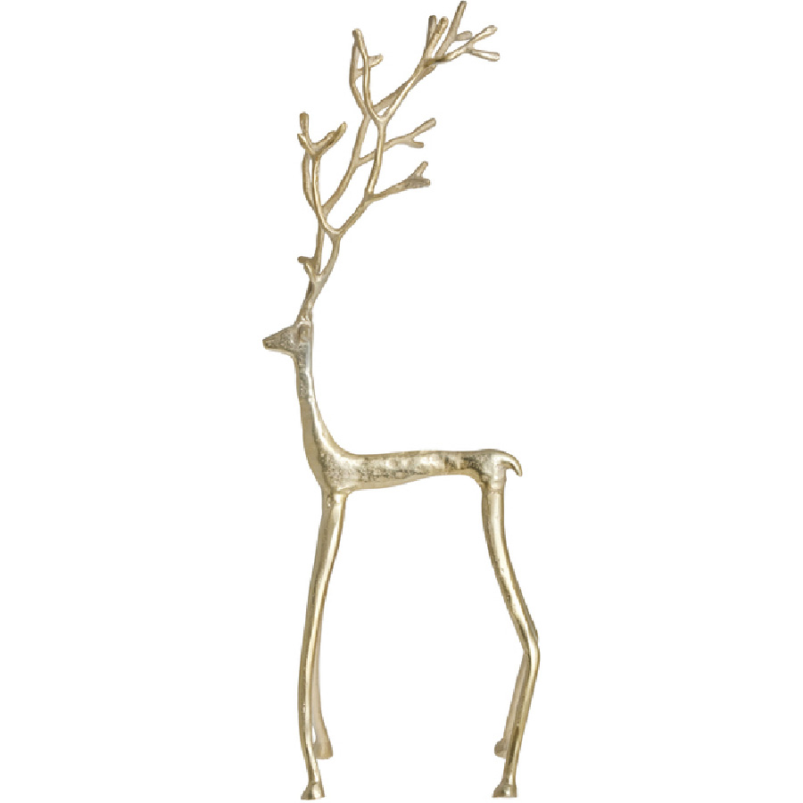 Der beeindruckende Hirsch MARELY ist aus Aluminium gefertigt, hat eine Höhe von 73 cm und glänzt in lichtem Gold. Er zieht mit seiner imposanten Höhe und seinen vielen Details die Blicke auf sich. Bringen Sie mit diesem Hirsch eine wundervolle Weihnachtsstimmung in Ihr Zuhause.