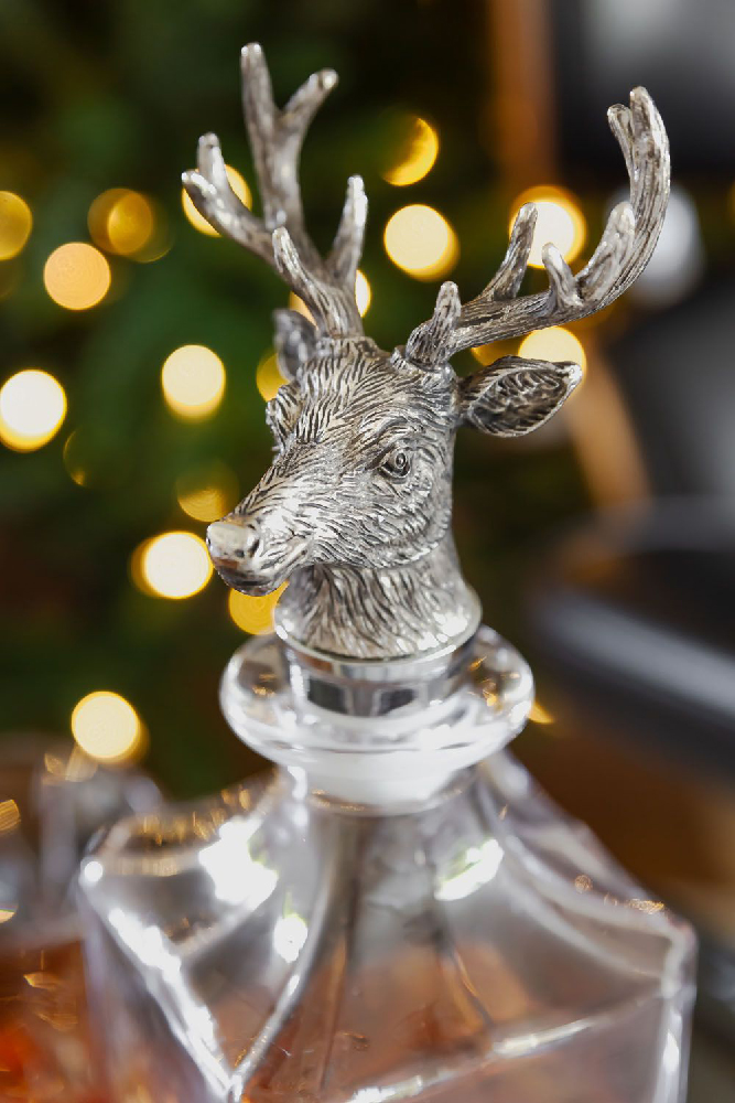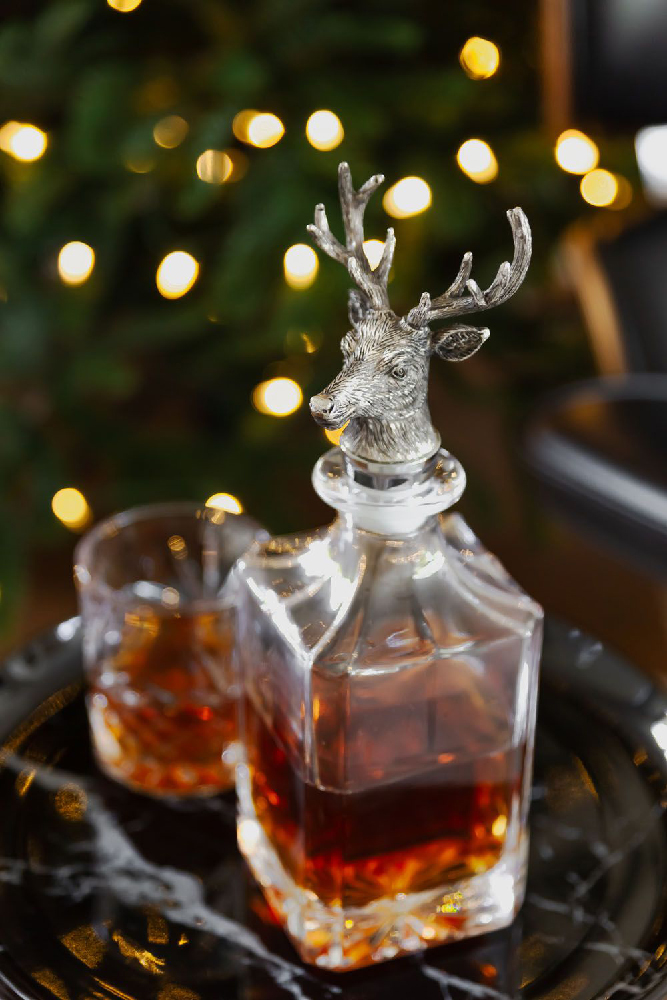 Praktisch und gleichzeitig dekorativ fungiert die Karaffe als idealer Gehilfe eines jeden Gastgebers. Die Karaffe mit einem Hirschkopf als Korken setzt Getränke aller Art in Szene.