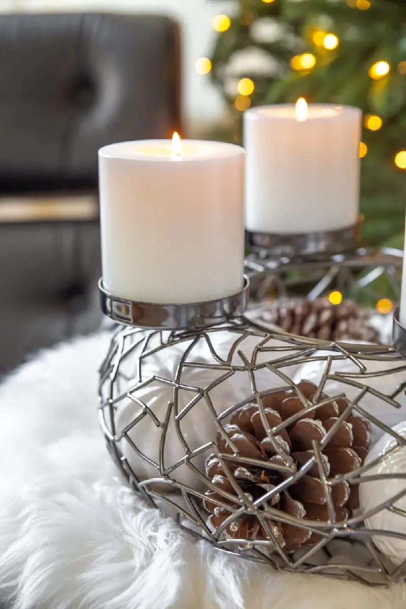 Maße: ø 34 cm / H 12 cm / Kerzenteller: ø 8,5 cm - H 2 cm