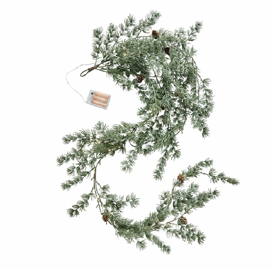 Naturgetreue und allergikerfreundliche künstliche Girlande aus der CEDILLE Serie mit LED-Beleuchtung. Diese Girlande ist leicht aufzuhängen und eignet sich perfekt, um eine zauberhafte Weihnachtsstimmung in Ihr Zuhause zu bringen.