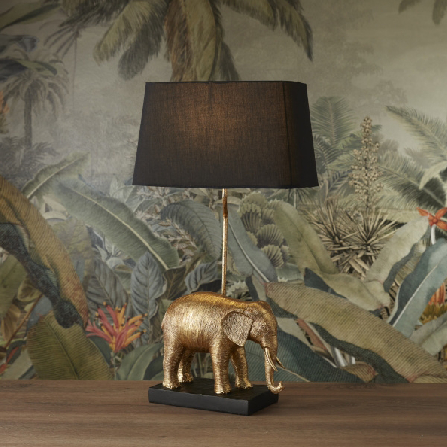 Wild Interiors Collection - Tierlampen sind momentan sehr angesagt! Der ELEFANT als Tischleuchte von WERNER VOß gehört zu den beeindruckendsten Exemplaren dieser Serie. Mit seinem massigen Körper auf kräftigen Säulenbeinen, dem langen Rüssel und seinen charakteristisch großen Ohren dominiert er diese klassisch-stilvolle Tischleuchte. Das leuchtende Gold des ELEFANTEN und das tiefe Schwarz des Sockels und des Lampenschirms passen perfekt zusammen. Schreibtisch oder Sideboard - welcher Platz passt besser?
