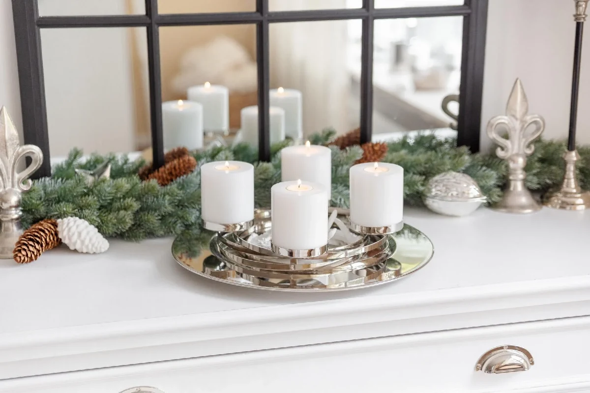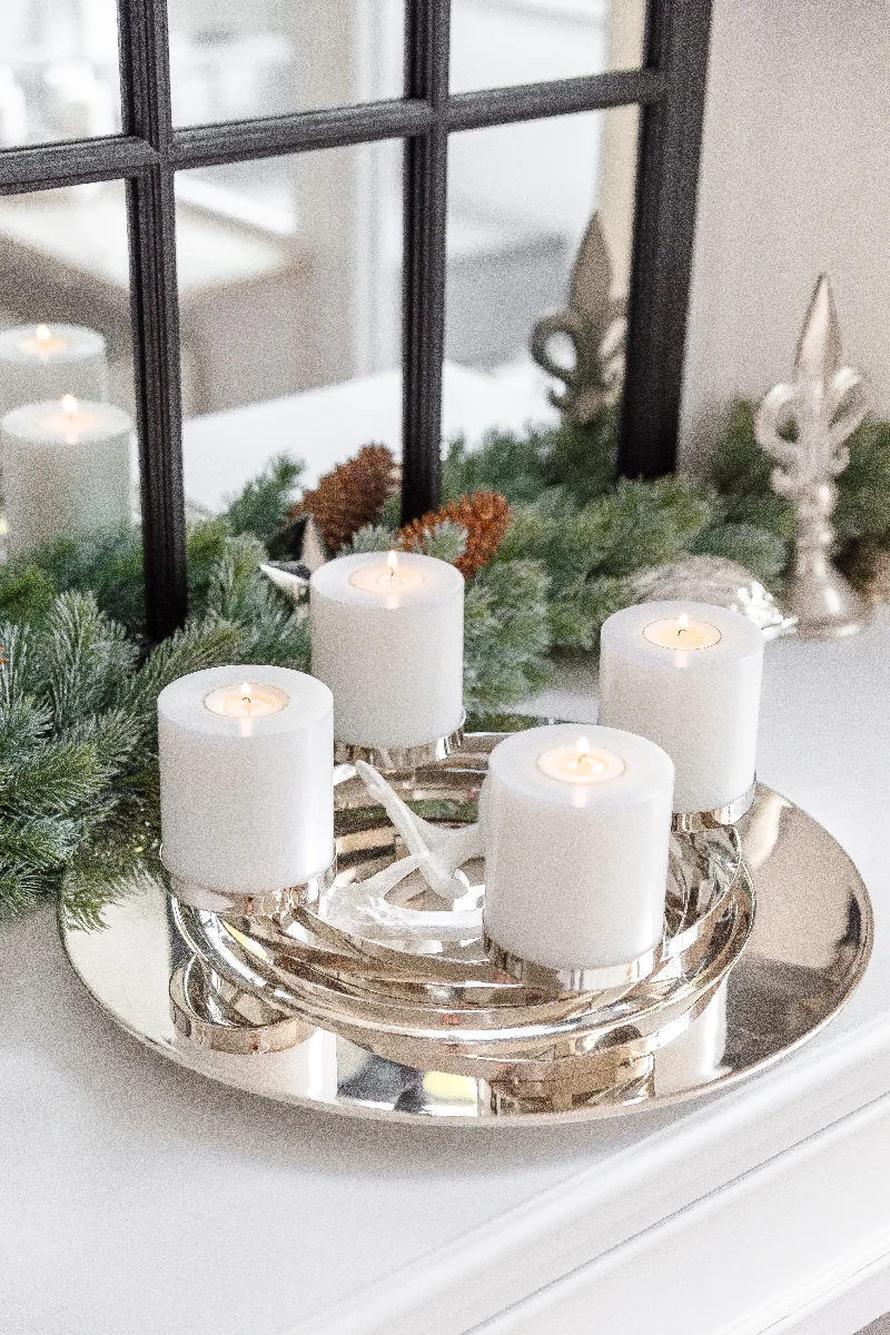 Auch außerhalb der Weihnachtszeit ist der Adventskerzenhalter eine schöne Lichtquelle und sorgt auf jedem Tisch für ein stilvolles Ambiente. Der Adventskranz ist für Stumpenkerzen geeignet. Die Stumpenkerzen sind nicht im Lieferumfang enthalten.