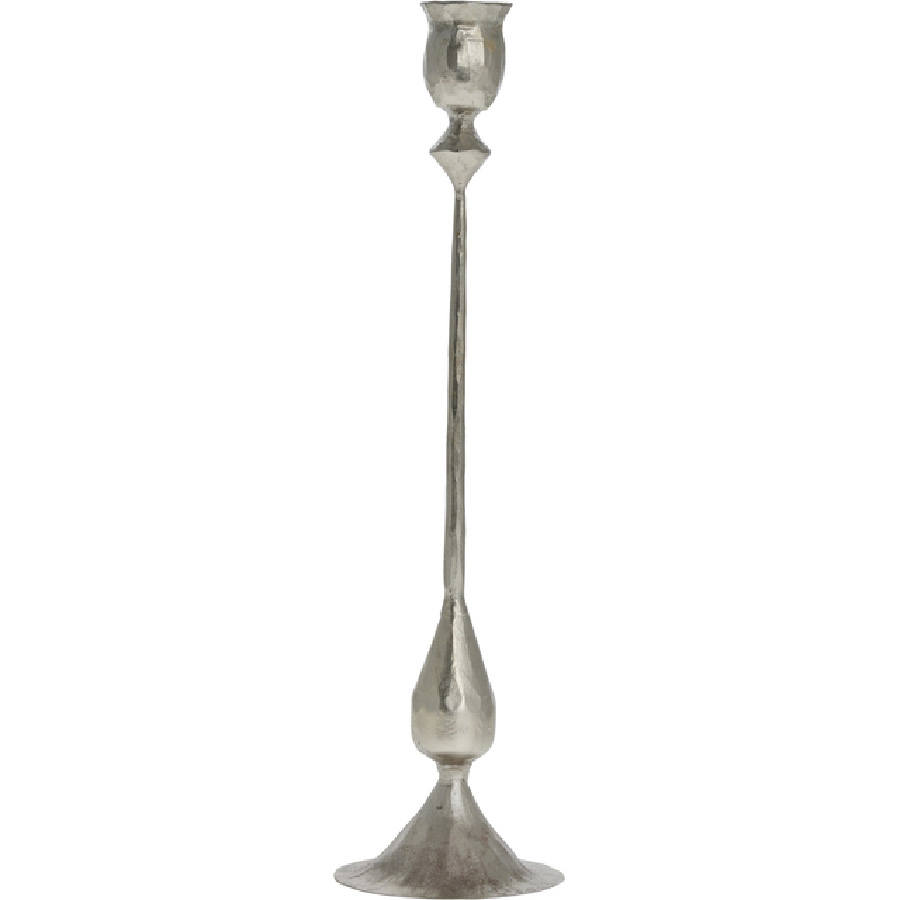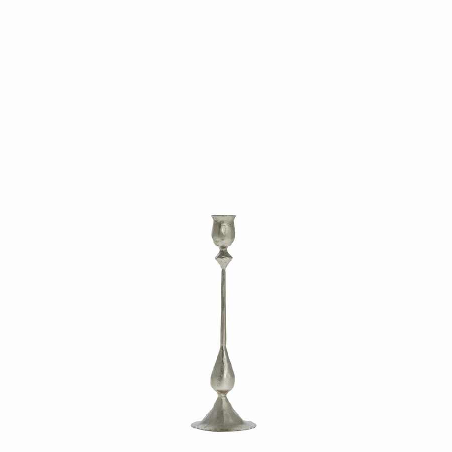 Der Kerzenleuchter INGRID in Silber ist aus Eisen gefertigt und strahlt mit seiner länglichen Silhouette und den sanft geschwungenen Details zeitlose Eleganz aus. Mit seinem Vintage-inspirierten Finish vermittelt er den Charme vergangener Zeit und bewahrt gleichzeitig eine minimalistische Ästhetik. Die dezente Textur verleiht ihm Charakter und macht ihn zu einem markanten Blickfang für den Esstisch, Kaminsims oder bei gemütlichen Zusammenkünften. Ob allein oder in Kombination mit anderen Deko-Elementen - dieses Stück passt perfekt in klassische und moderne Umgebungen.