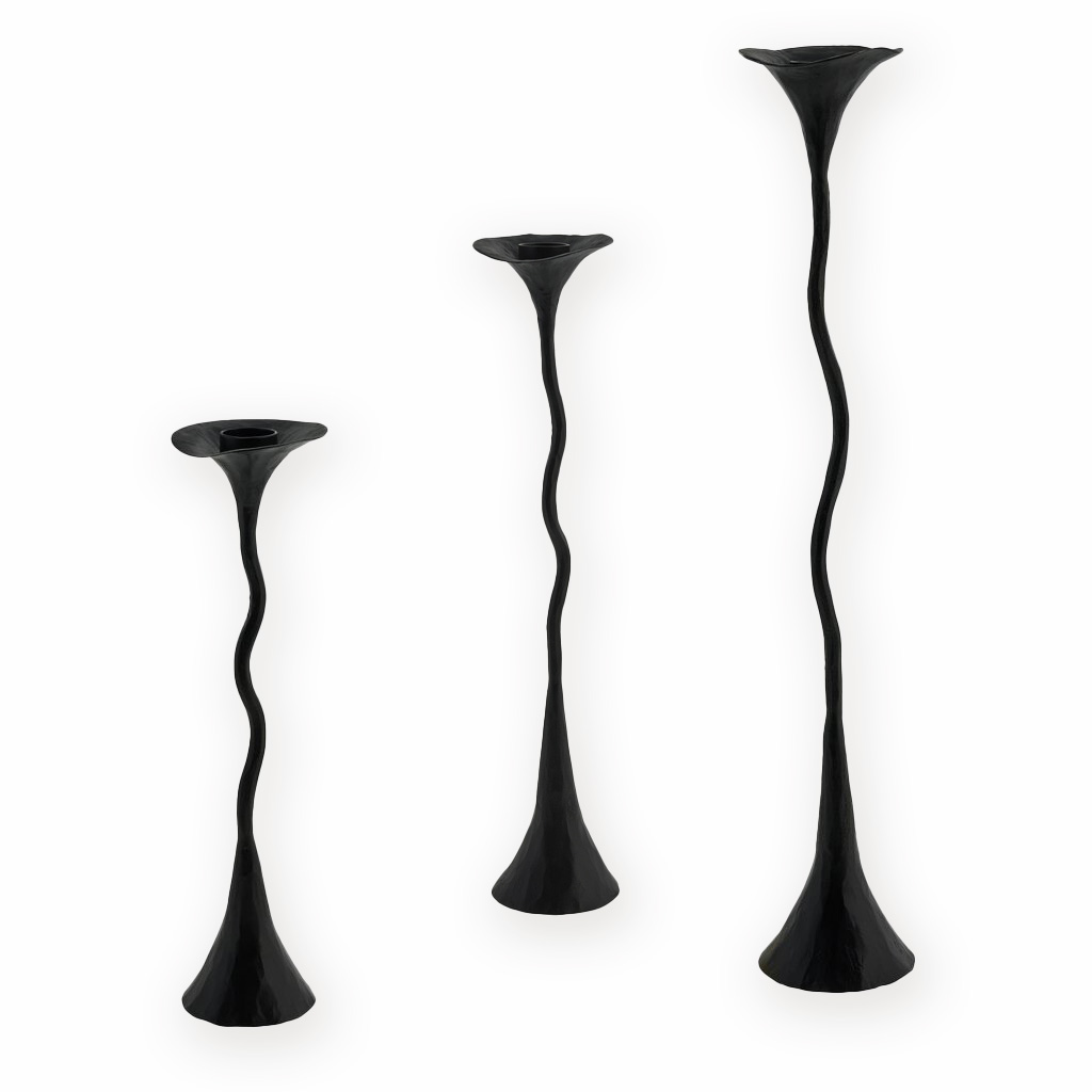 Der elegante Kerzenständer CALA in Schwarz ist ein künstlerisches Statement für sich. Mit seiner geschwungenen Form und der schönen Oberfläche verbindet er skulpturale Schönheit mit funktionalem Design. Ideal, um sowohl in modernen als auch in klassischen Interieurs Dramatik und Atmosphäre zu schaffen. Dadurch wird er zu einem auffälligen Element auf dem Esstisch, dem Kaminsims oder bei geselligen Zusammenkünften.