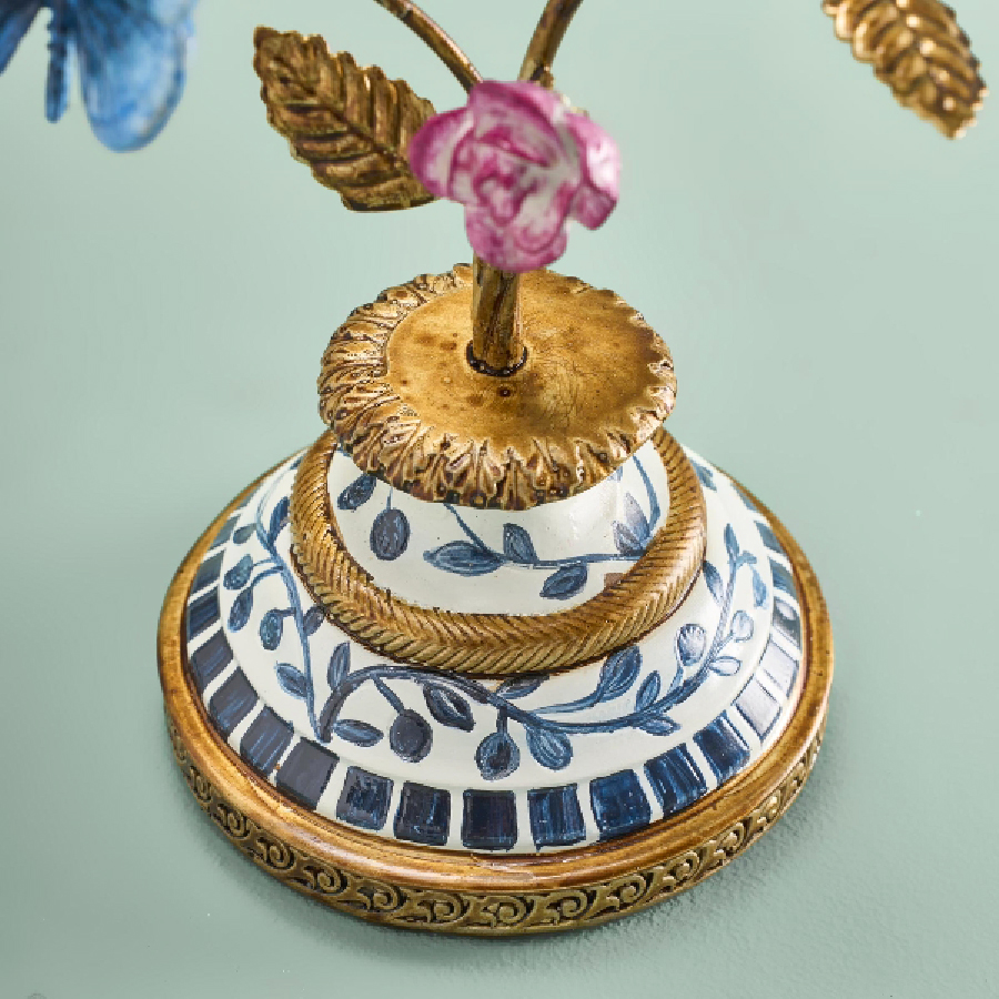 Dank seiner stabilen Konstruktion und der sorgfältigen Verarbeitung eignet sich der Leuchter ideal als dekorativer Mittelpunkt auf Tischen, Kommoden oder Fensterbänken. Die keramisch anmutende Sockelgestaltung ergänzt das Gesamtbild mit klassischen Ornamenten.